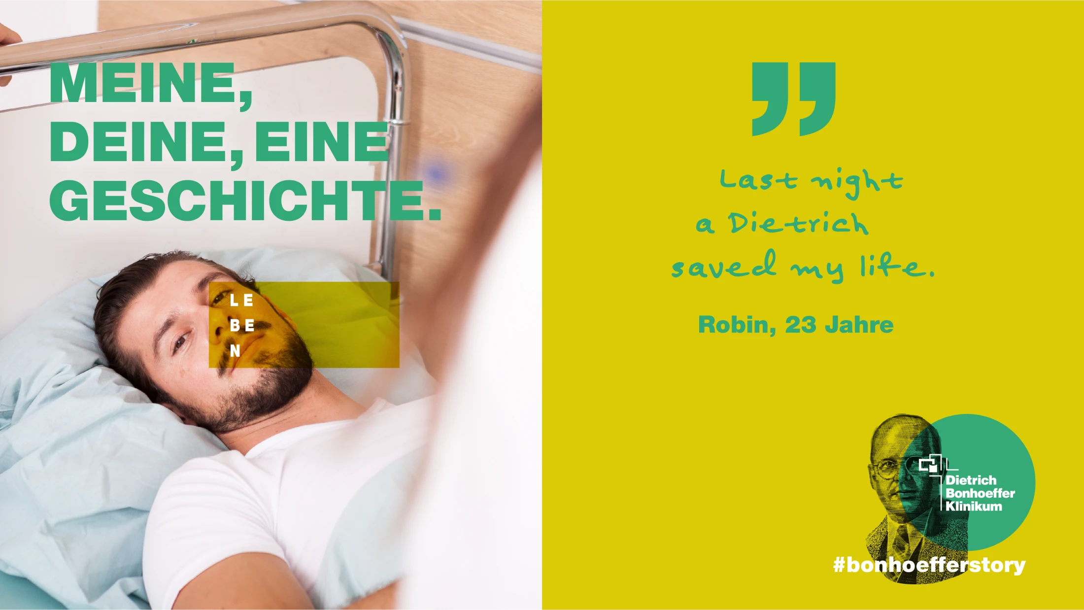 Was vor 20 Jahren Ursprung unserer Agentur war, ist bis heute Teil unseres gemeinsamen Anspruchs: Geschichten so zu verdichten, dass sie Menschen berühren und Marken ein unverwechselbares Profil geben. Für das Dietrich-Bonhoeffer-Klinikum kehrten wir zurück zu unseren Wurzeln: Musik als universelles Medium